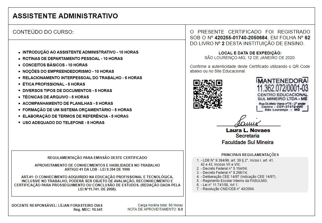 TODOS OS CURSOS LIVRES ONLINE DE NOSSO SITE EDUCACIONAL POSSUEM CARGA HORÁRIA DE 40 HORAS. AO CONCLUIR O CURSO E CUMPRIR A CARGA HORÁRIA DE ESTUDOS, O ALUNO RECEBERÁ SEU CERTIFICADO DE CONCLUSÃO DE CURSO, VÁLIDO EM TODO TERRITÓRIO NACIONAL.